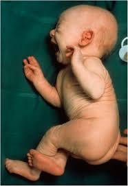 Vascular, urogenital, and skeletal abnormalities are common. Skeletal changes like pectus excavatum or pectus carrinatum, and generalized osteoporosis bring on spontaneous fractures. The joints are hyperextensive, and loose and dry skin may be observed very early. Seborrheic dermatitis is also a frequent feature. In later stages patients frequently fail to follow visual stimulus.